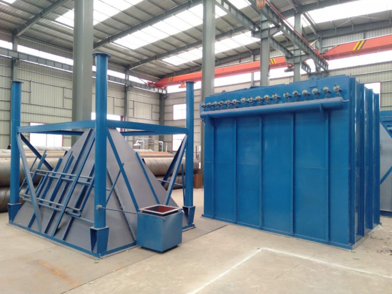 清灰過程是先切斷該室的凈氣出口風道,使該室的布袋處于無氣流通過的狀態(分室停風清灰)。然后開啟脈沖閥用壓縮空氣進行脈沖噴吹清灰,切斷閥關閉時間足以保證在噴吹后從濾袋上剝離的粉塵沉降至灰斗,避免了粉塵在脫離濾袋表面后又隨氣流附集到相鄰濾袋表面的現象,使濾袋清灰徹底,并由可編程序控制儀對排氣閥、脈沖閥及卸灰閥等進行全自動控制。含塵氣體由進風口進入,經過灰斗時,氣體中部分大顆粒粉塵受慣性力和重力作用被分離出來,直接落入灰斗底部。含塵氣體通過灰斗后進入中箱體的濾袋過濾區,氣體穿過濾袋,粉塵被阻留在濾袋外表面,凈化后的氣體經濾袋口進入上箱體后,再由出風口排出。